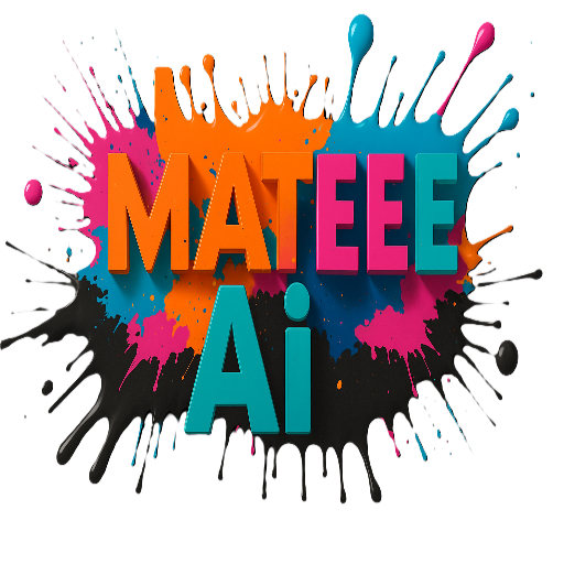 “A splash image logo for my website "MATEE Ai" with multiple colours”